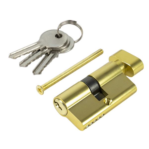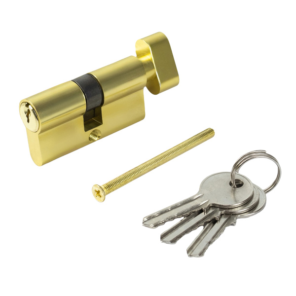 Цилиндр. механизм, ключ-защелка,цвет:золото,60 мм Политех