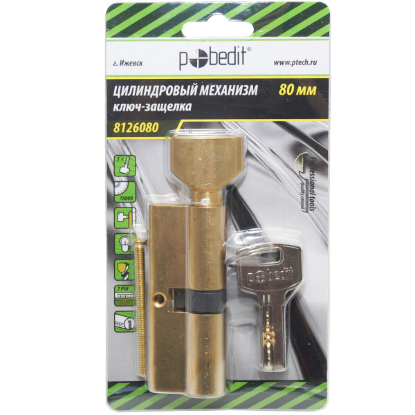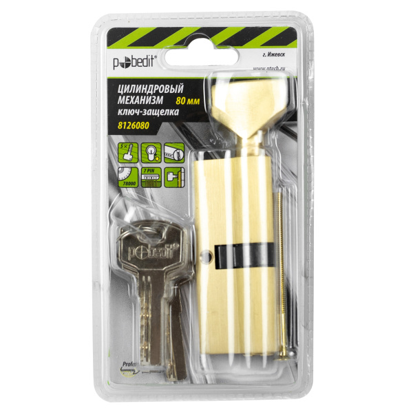 Цилиндр. механизм, ключ-защелка,цвет:золото,80 мм Pobedit