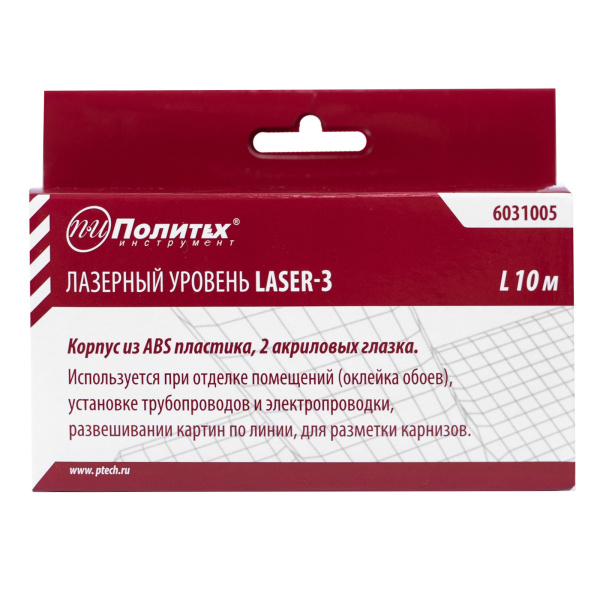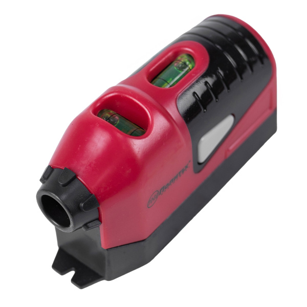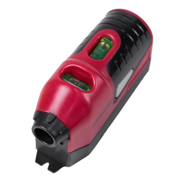 Корпус из ABS пластика. Функции: уровень, отвес, маркер, проекция вертикальной линии. 2 глазка для выравнивания, пазы для крепления гвоздиками.