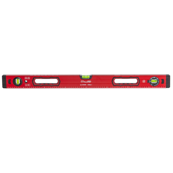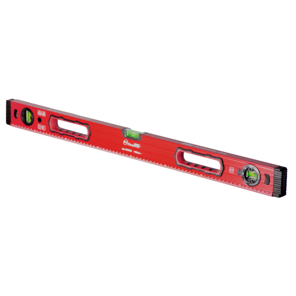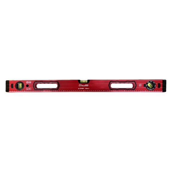 Алюминиевый профиль толщиной 0,8 мм, 3 глазка (0°, 90°, поворотный) точностью 1 мм/м.Фрезерованная магнитная рабочая поверхность. Измерительная шкала. Ударопрочные резиновые заглушки, прорезиненные ручки.