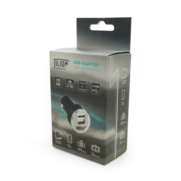 Автомобильный USB-адаптер 2USB 2100мА, чёрный