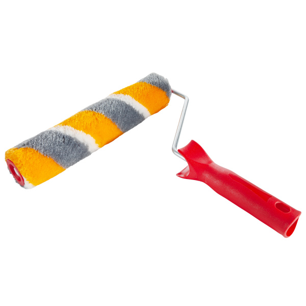 Валик изготовлен из тканного полиамида, высота ворса 12 мм. плотность 900 г/кв.м. Рукоятка из пластика, оцинкованный стержень.