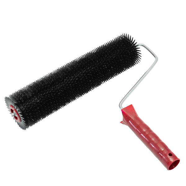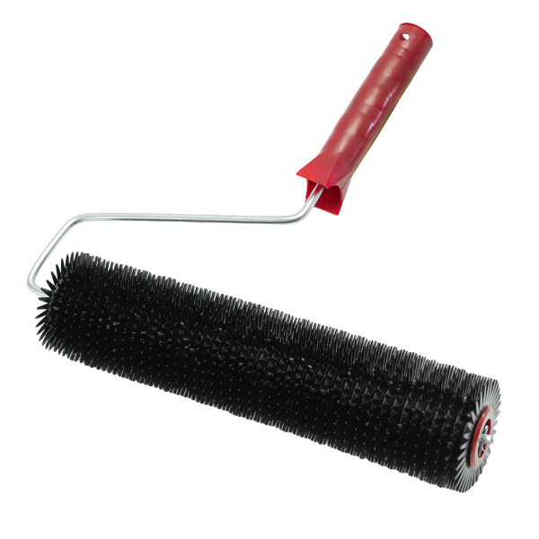 Изготовлен из пластмассы. Шип 10 мм с закруглением. Предназначен для прокатывания неотвержденных лицевых слоев наливных полов, стяжек с целью удаления воздуха.