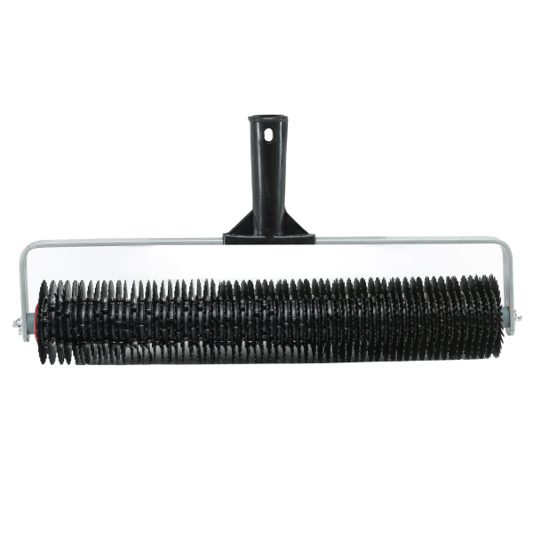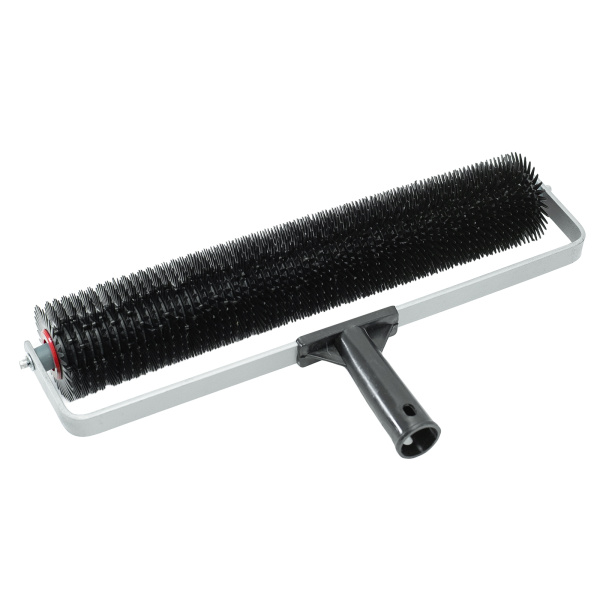 Изготовлен из пластмассы. Шип 10 мм с закруглением. Предназначен для прокатывания неотвержденных лицевых слоев наливных полов, стяжек с целью удаления воздуха.