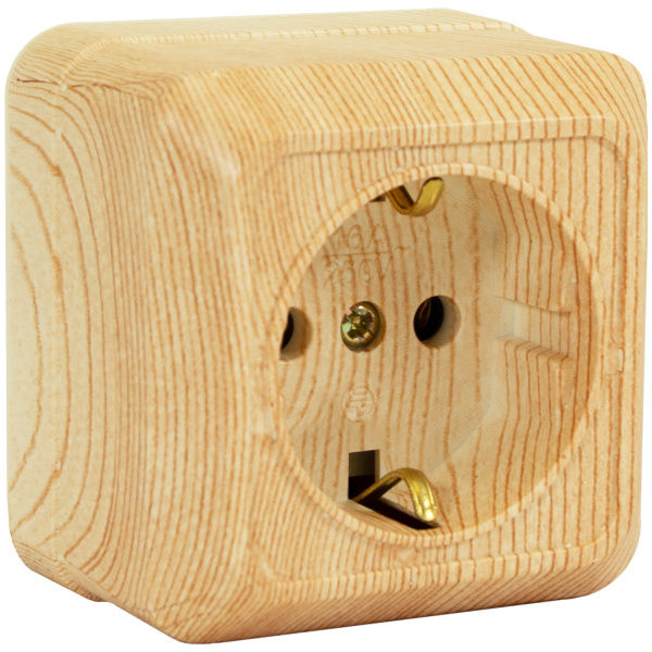 Розетка 1 гнездо (с/з) О/У. дуб