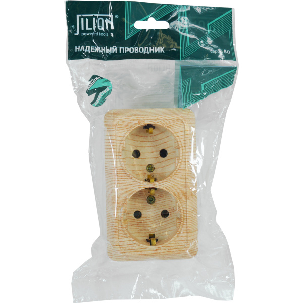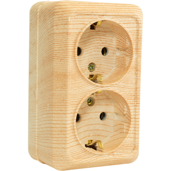 Розетка 2 гнезда (с/з) О/У. дуб
