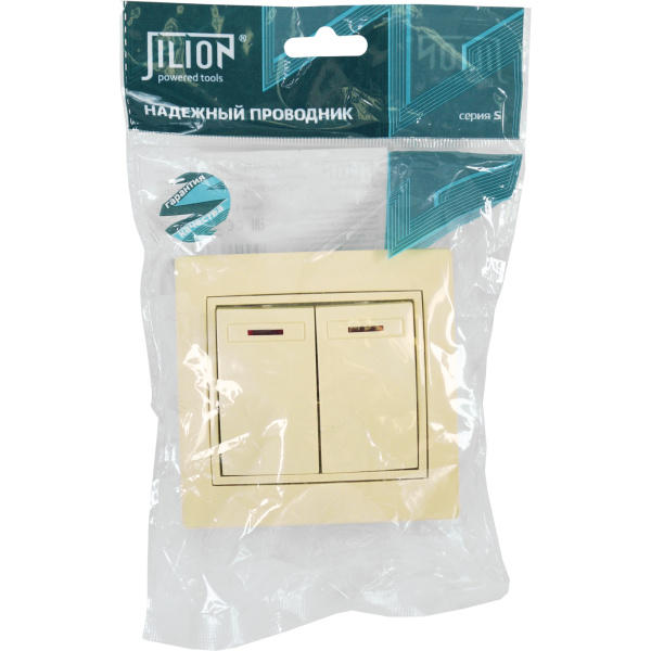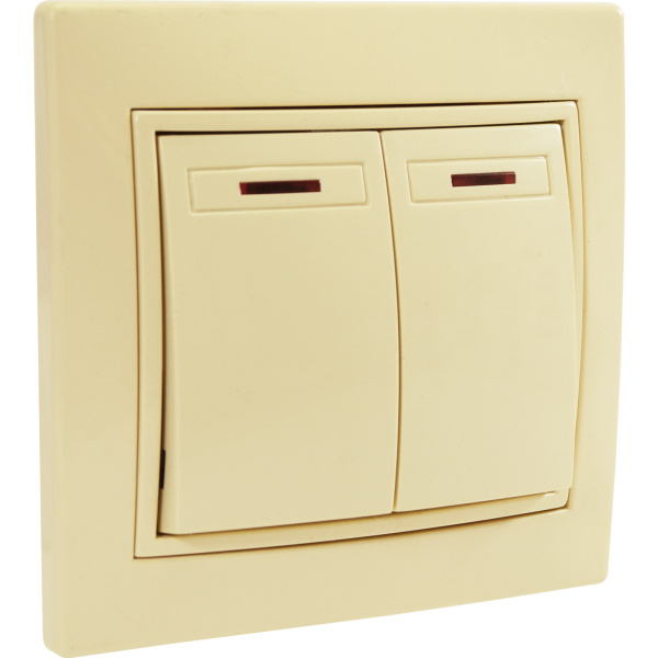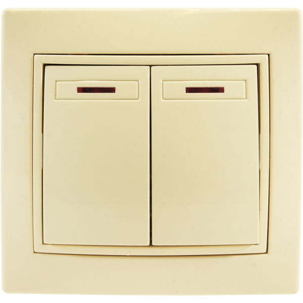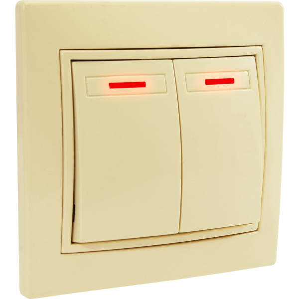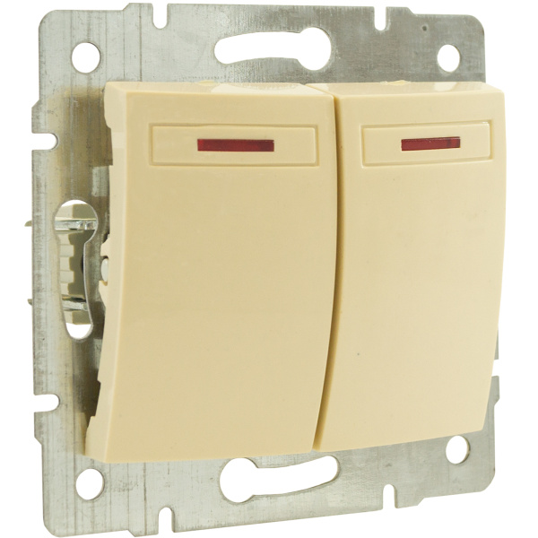 Выключатель двухклавишный с подсветкой С/У. бежевый