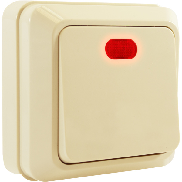 Выключатель одноклавишный с подсветкой О/У. бежевый