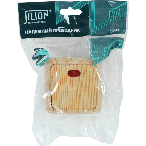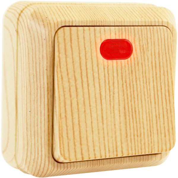 Выключатель одноклавишный с подсветкой О/У. дуб