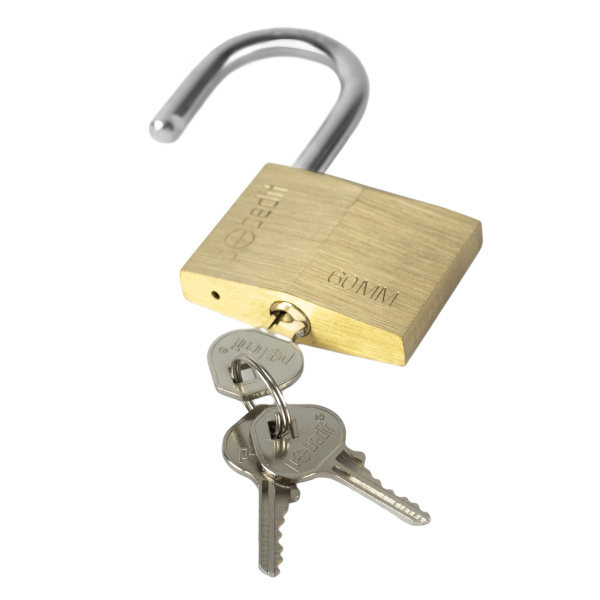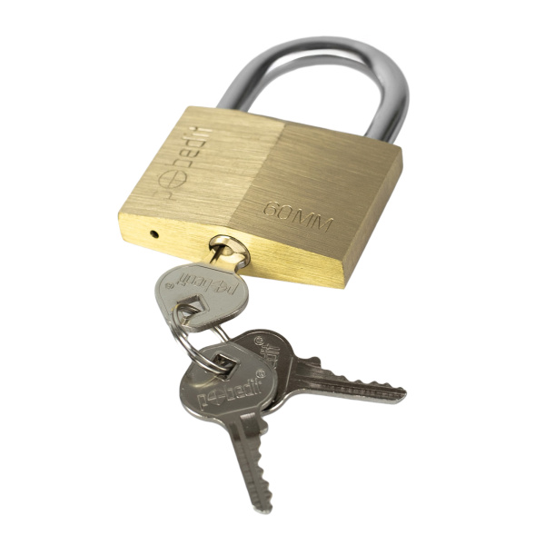 Латунный замок с прочным корпусом. Сложная конструкция замка значительно снижает вероятность взлома. В комплекте 3 ключа.