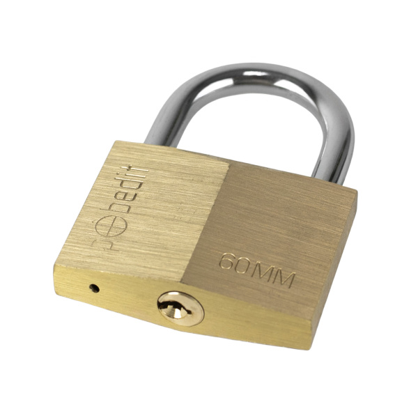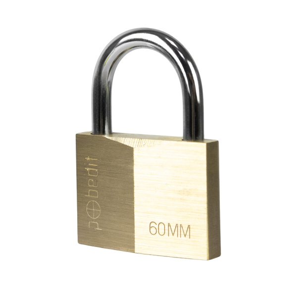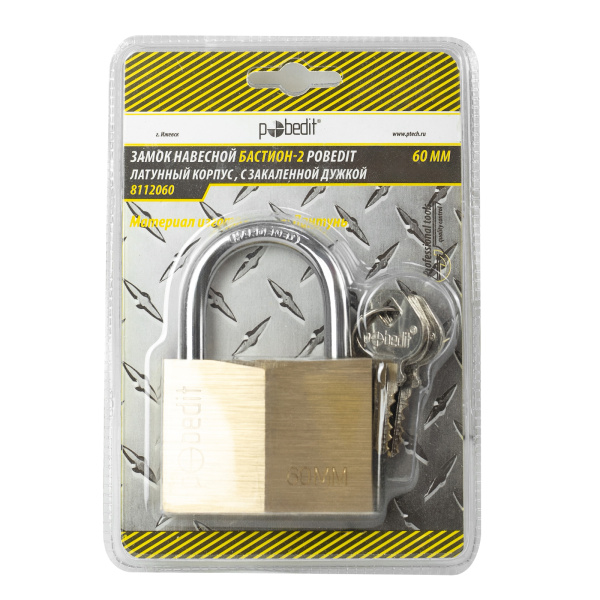 Замок навесной Бастион-2, латунный корпус, с закаленной дужкой, 60мм, Pobedit