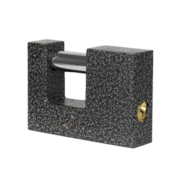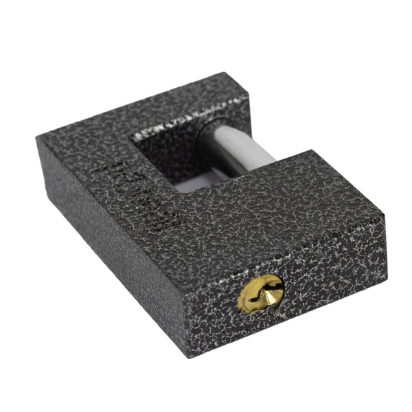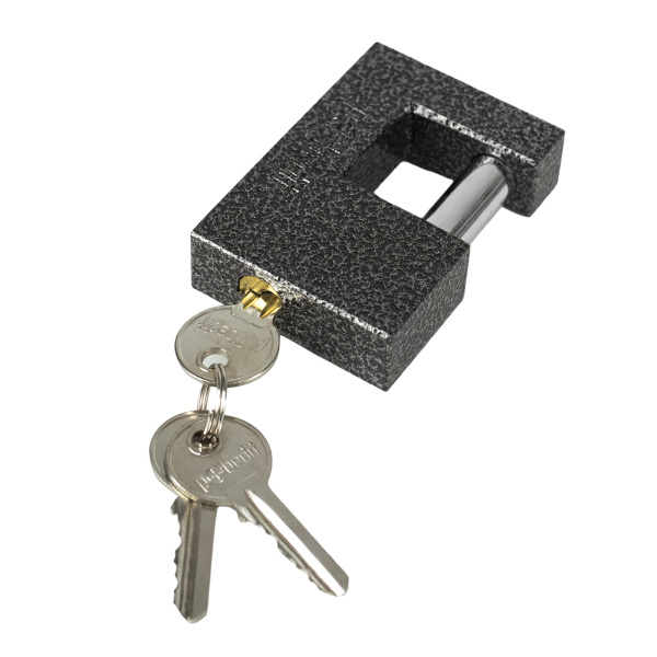 Легкий навесной замок с прочным корпусом. Имеет заглубленный прямой стальной засов. В комплекте 3 ключа.