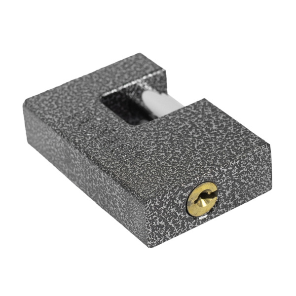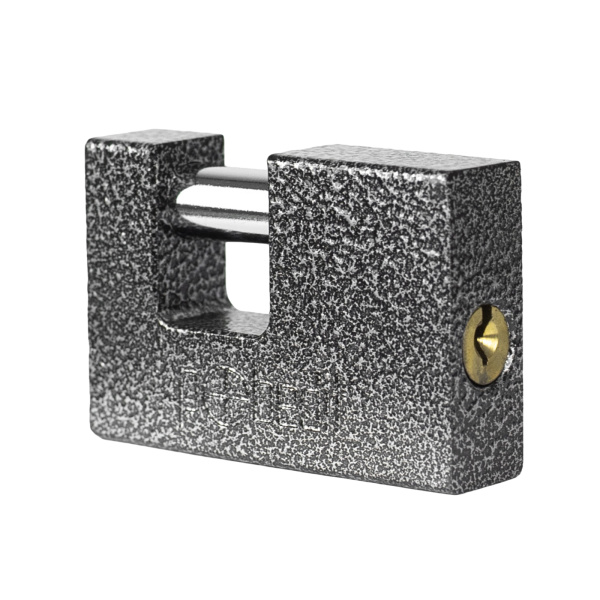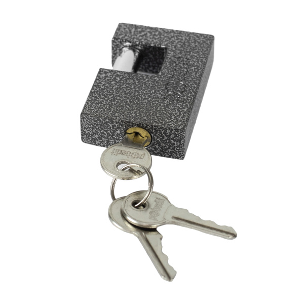 Легкий навесной замок с прочным корпусом. Имеет заглубленный прямой стальной засов. В комплекте 3 ключа.