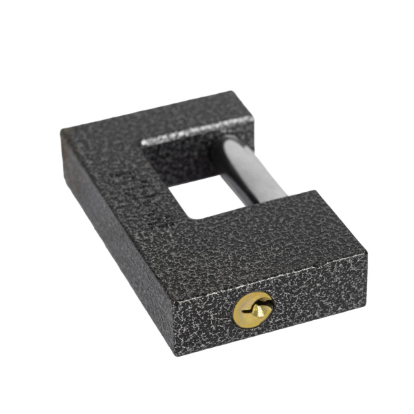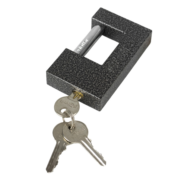 Легкий навесной замок с прочным корпусом. Имеет заглубленный прямой стальной засов. В комплекте 3 ключа.