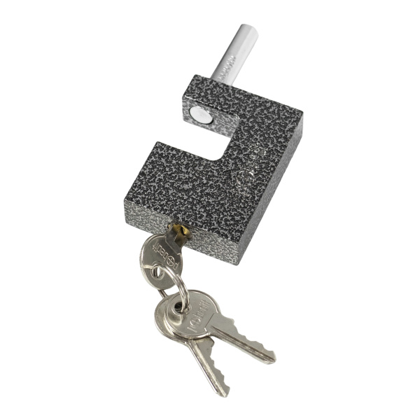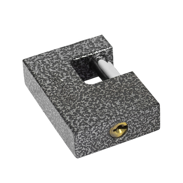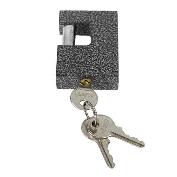 Легкий навесной замок с прочным корпусом. Имеет заглубленный прямой стальной засов. В комплекте 3 ключа.