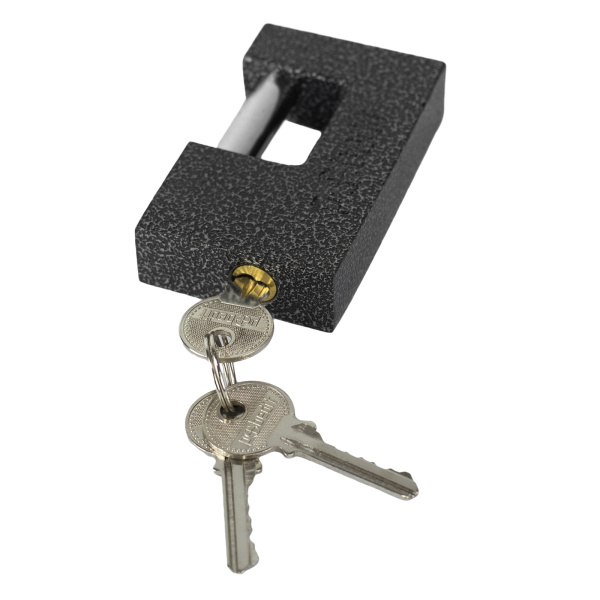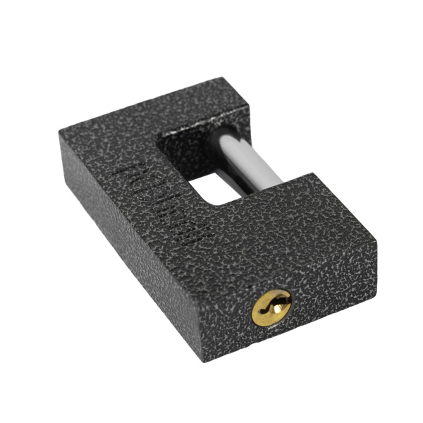 Легкий навесной замок с прочным корпусом. Имеет заглубленный прямой стальной засов. В комплекте 3 ключа.