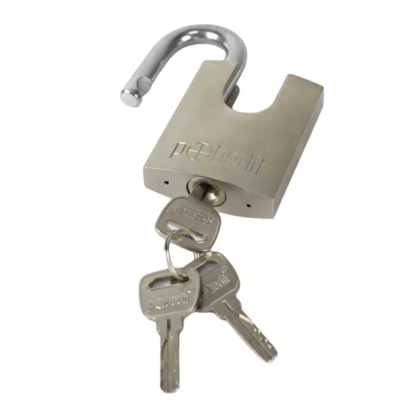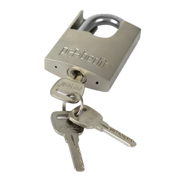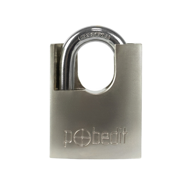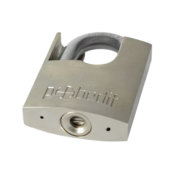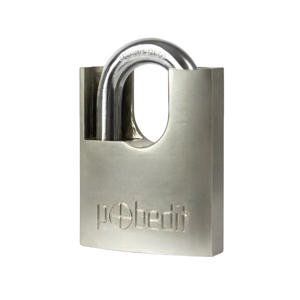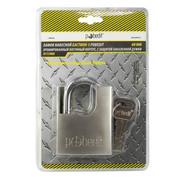 Замок навесной Бастион-5, хромированный латунный корпус, с защитой закаленной дужки, 60 мм, Pobedit