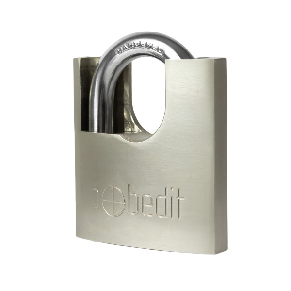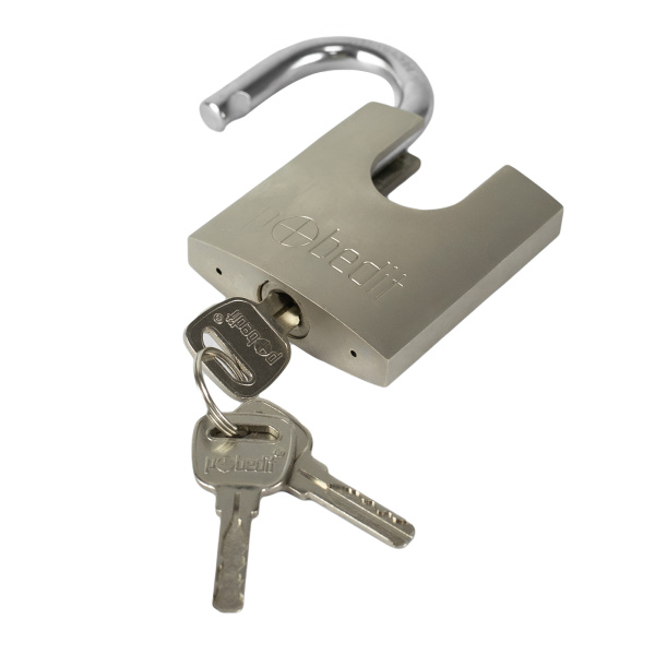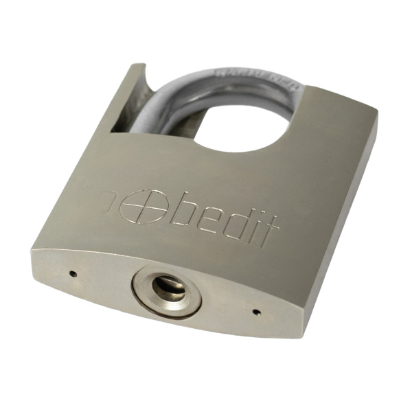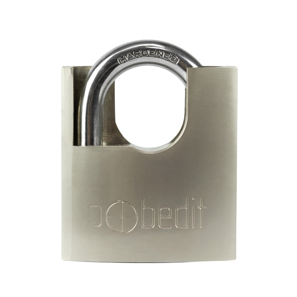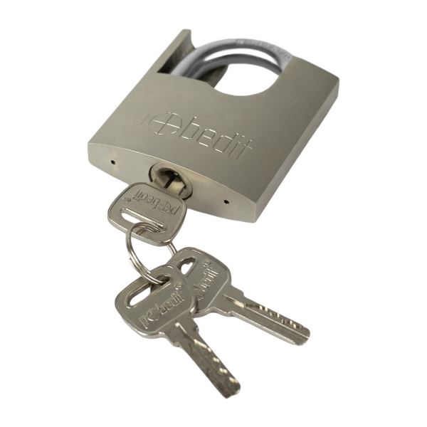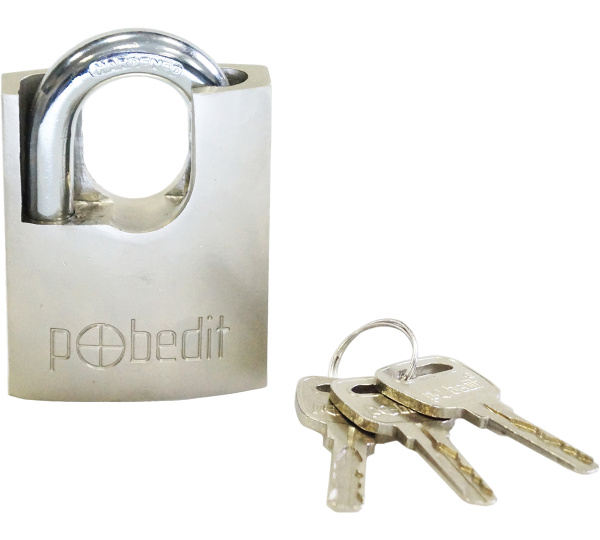 Замок навесной Бастион-5, хромированный латунный корпус, с защитой закаленной дужки, 70 мм, Pobedit