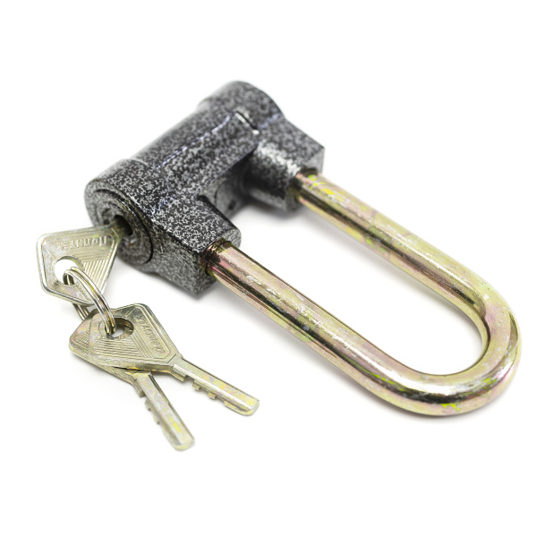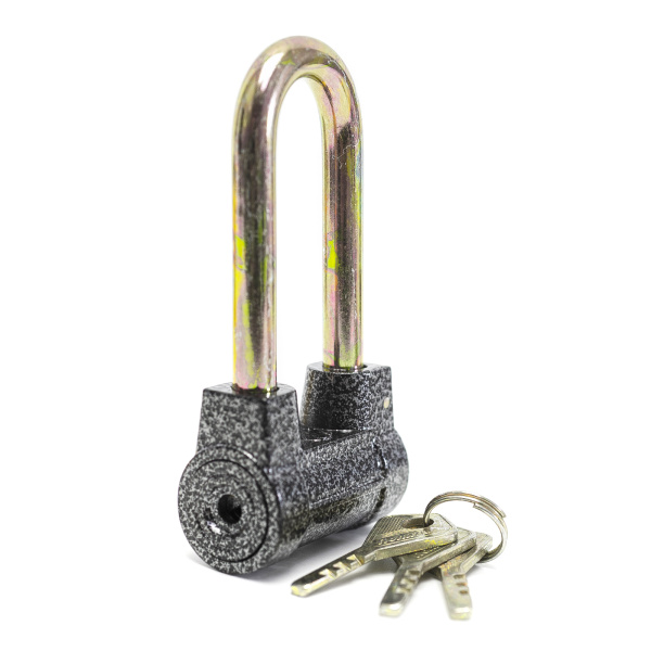 Замок навесной повышенной секретности. Высокопрочный корпус и стальная закаленная заглубленная дужка. В комплекте 3 ключа.