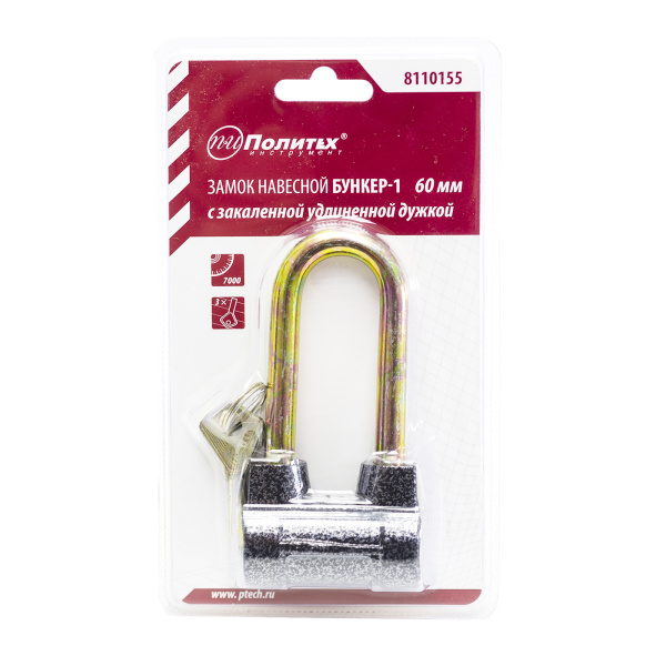 Замок навесной Бункер-1, 60мм, удл. дуж. Политех