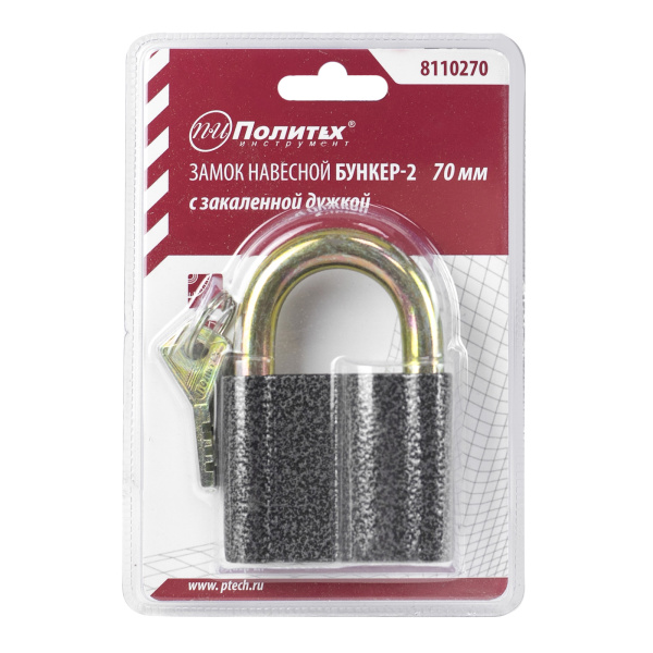 Замок навесной Бункер-2, аллюминиевый корпус, с закаленной дужкой, 70мм, Политех