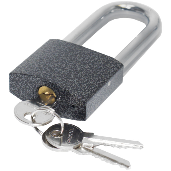 Высокопрочный корпус и стальная закаленная дужка .В комплекте 3 ключа.