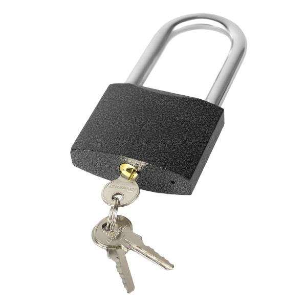 Высокопрочный корпус и стальная закаленная дужка .В комплекте 3 ключа.