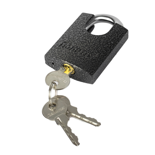 Высокопрочный корпус с защитой стальной закаленной дужки .В комплекте 3 ключа.