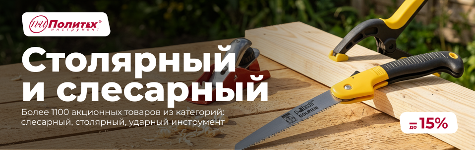 Действует акция со скидками до 15% на широкий ассортимент столярно-слесарного инструмента для дома и профессионального использования.